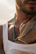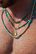 Encontre o frescor dentro da Turquesa, carregue o mar em seu peito. Os colares em Turquesa remetem ao ao brilho ciano esverdeado das águas, o verde das palmeiras. Deixe o poder da pedra te atrair para as águas turquesas e se envolva com a majestosa sensação de liberdade.