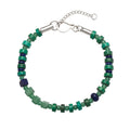 Inspirada nas paisagens de restinga, onde a vegetação baixa encontra a areia clara e lagoas se formam entre dunas após as chuvas, a Pulseira Restinga revela a harmonia entre tons verdes minerais e o azul profundo do Lápis Lazúli. Essa paisagem costeira, marcada pelo encontro entre água, areia e vegetação resistente, transmite uma sensação de frescor, equilíbrio e movimento natural. As pedras verdes apresentam variações orgânicas que evocam vitalidade e renovação, enquanto o lápis lazúli adiciona profundidade e contraste à peça, formando um diálogo visual que transmite serenidade, presença e leveza.